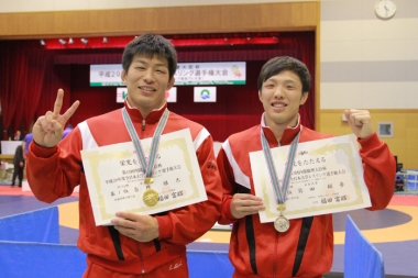 来年の地元・福井国体へ弾みをつけた白井と前田頼夢(61kg級2位=ともに日大)