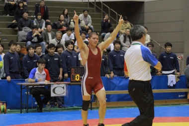 「朝の走り込みが増えましたけど、レスリングを意識したメニューばかりでした」。長島総監督らの指導を信じて練習し、地力を伸ばずことに成功。“優勝決定戦”では3番手に出場し(注=同リーグは抽選で試合順が決まる)、終盤に逆転劇を演じてチームの勝利を引き寄せる白星を挙げ、一部の最優秀選手賞を受賞した。