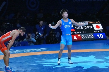 Ota defeats defending champion Stepan Maryanyan (RUS) to win the world 63kg title in September 2019 in Nur-Sultan.
