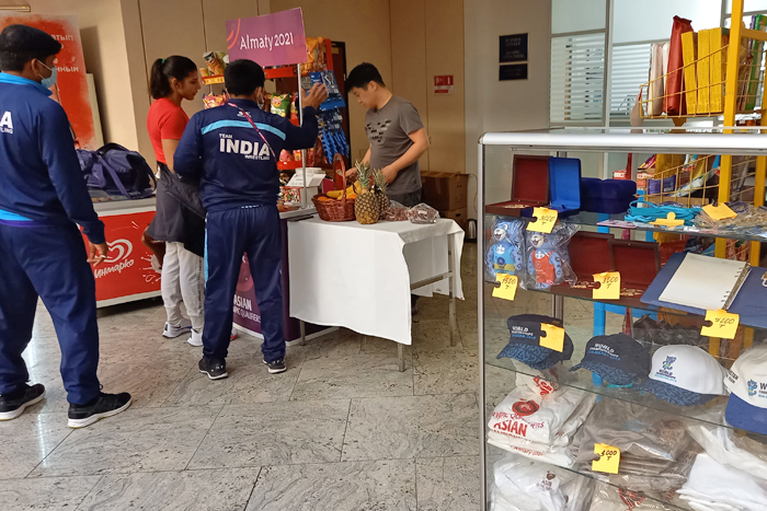須﨑選手はカザフスタンでも人気者。ボランティア・スタッフを含め、ひっきりなしに記念撮影のリクエストがやってくる。須﨑はそのたびに「アフター」と笑顔で答え、夕方からの決勝に備えていた。