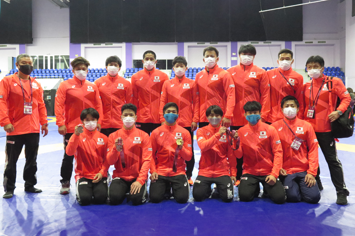 アジア選手権第2日。この日も男子グレコローマン5階級が争われたが、日本チームにとっては大豊作の1日となった。67㎏級の下山田培(警視庁)が優勝したばかりでなく、60kg級の鈴木絢大(レスターホールディングス)、72kg級の堀江耐志(自衛隊)、82kg級の向井識起(自衛隊)の3選手が銅メダルを獲得した。