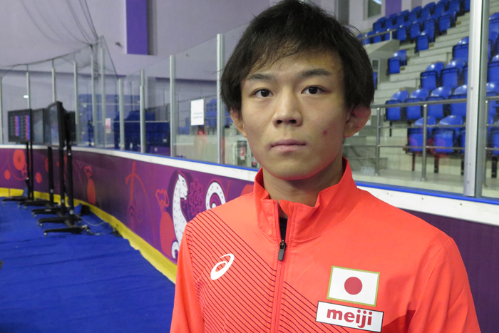 アジア選手権初日。この日は男子グレコローマン5階級が行なわれ、55㎏級の塩谷優選手(拓大)が日本男子最年少のアジア王者となった。日本でも“イケメン”として知られている塩谷だが、その人気はカザフスタンでも健在。練習時からボランティア・スタッフの女性が何人も記念撮影を求め、優勝が決まるや塩谷熱はさらに加速していた。