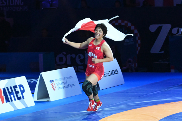 石井はパリ・オリンピック76kg級代表のユリアナ・ヤネバ(ブルガリア)相手にリードを許す展開になったが、第2ピリオドに逆転。最後は3-2で振り切り(相手のチャレンジ失敗で、スコアは4-2へ)、昨年の72kg級に続いて2年連続の世界一に輝いた。