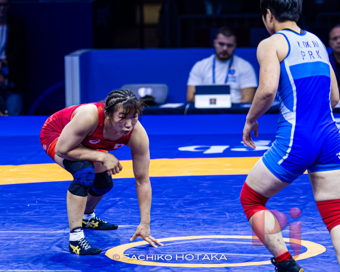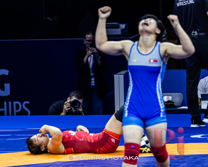 もう一方のブロックから勝ち上がってきたのはキム・オクユ(北朝鮮)。今年のアジア選手権2位の選手だ。かつて対戦したことはなかったが、北朝鮮勢は今年のアジア選手権に続き、世界選手権でも目覚ましい活躍を見せていただけに、決してあなどれない存在だった。