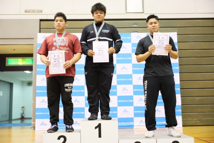 優勝=大関勁心(九州共立大)、2位=雉鳥吉悠(九州共立大)
