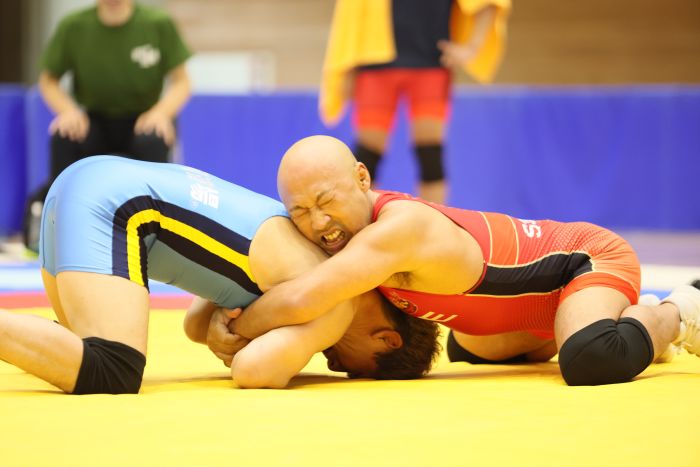 鈴木コーチは大会前、学生選手との練習で腰を痛め、「アキマヘン」と弱気だったが、試合になると豹変し、しっかり勝利。2023年大会に続いて金メダルを手にした。9月29日からの国民スポーツ大会(滋賀)では、同じ階級(男子フリースタイル97kg級)に髙橋夢大(京都代表)と吉田ケイワン(千葉代表)の2人の所属選手が出場することもあり、2人にエールを送った形。