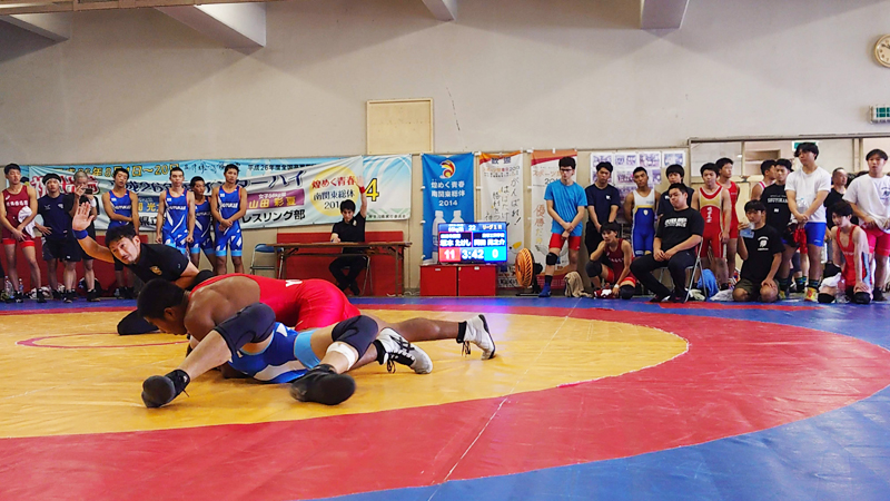 今回の大会では、中学までのレスリング経験者が相手では、とうてい勝つことができないであろう、と思われる選手が、勝つことで喜び、チームが大きく盛り上がる場面が見られました。スコアが24-22(合計総得点46点)という、“乱打戦”もありました。