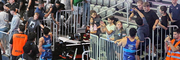 男子グレコローマンがスタート。前日は女子だけだったので会場にいなかったイラン応援団が戻り、プップッププ-・プップの“ラッパ応援”が復活。会場のにぎやかさが戻ってきた。地元のクロアチアも、フリースタイルよりグレコローマンの方が盛んな国。会場のボルテージは、これまでより上のような気がする。