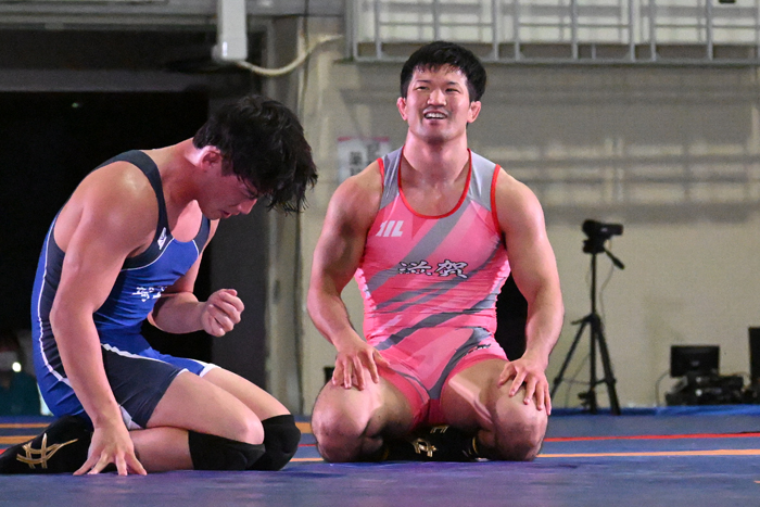 2025年国民スポーツ大会の成年男子フリースタイル74kg級は、2022年に70kg級で世界王者に輝き、その後、グレコローマンでの世界王者を目指している成國大志(滋賀・滋賀県スポーツ協会)が、このスタイルに“Uターン参加”。準々決勝で、先月の世界選手権70kg級を制した青柳善の輔(福島・クリナップ)を破るなどして優勝し、フリースタイルでも変わらぬ強さをアピールした。