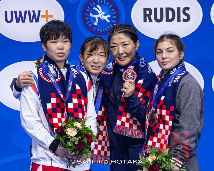 ■元木咲良の話「(決勝は)3点リードして、彼女がシングルレッグで攻めてきた時は、2点許しても大丈夫だと思ったんです。逆転されたとき、『これはまずい。またもやここまで来て勝てないのか?』と思いました。タックルが失敗した時に『ああ、もう終わりだ』と思いました。振り返ると、彼女が背中に乗っていました。投げれば何とかなると思いました。全力を尽くして投げました。返せたかどうかは分かりませんでした。本当に運が良かったんです。」