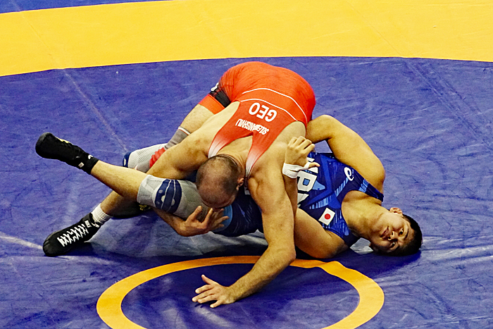 今大会の一番のヤマ場は、決勝でフォールされかけたことですかね。自分でもヒヤッとしました。自分がタックルに入ったとき、相手は(カウンターを)狙っていたんだと思います。(どの選手も)あまりやってこない技なので(対応を考えておらず)、そこを油断していたというか、技をかけられてしまった。感覚的には自分の背中がついていた。(フォールと見なされなかったことは)結構ラッキーなところがあったと思います」