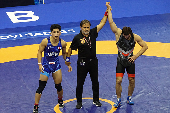 ずっと世界を夢見て、日体大でやっていますけど、まだ自分と世界との差が大きかったかな、と思います。今回(先輩で同じ階級の)清岡幸大郎さんはドイツのブンデスリーガに行っているので、直接言われたわけではないですけど、DMを通じて『勝ち切ってこい』と、3位決定戦に進んだあとには『しっかりとメダルを持って帰って来てくれ』と伝えられていた。それができなかったので申し訳ない気持ちでいっぱいです。世界で勝てる清岡さん、(樋口)黎さんとは、まだ差があることを痛感しました」