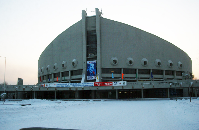 ▲体育館の外は雪。オリンピックのレスリング競技の光景となるか=2010年1月、ヤリギン国際大会(ロシア)