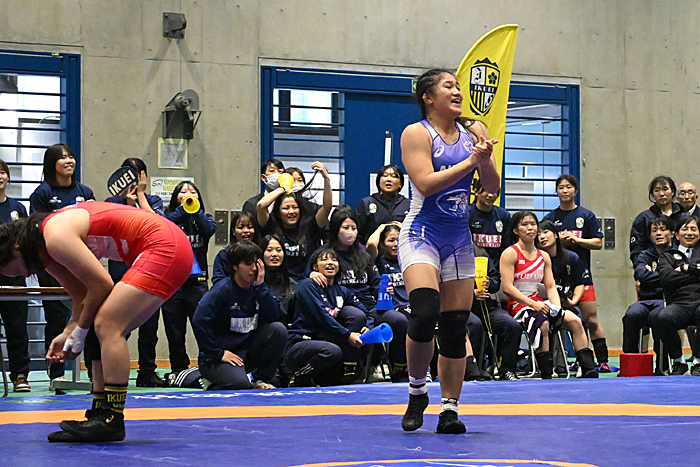 76kg級は、全日本学生選手権72kg級優勝の藤倉優花(育英大)と62kg級優勝の伊藤渚(日体大)の学生チャンピオン同士の対戦となり、終了間際まで勝敗の行方が見えない大接戦の末、伊藤が4-2で振り切って日体大に勝利をもたらした。今年4月に田南部力監督が就任し、初の大会で優勝を引き寄せた。