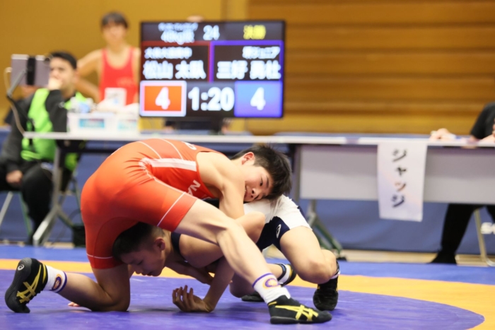染谷陸(赤=千葉・パラエストラ)○[フォール、1:52=6-2]●松山上太郎(東京・日本工大駒場中)