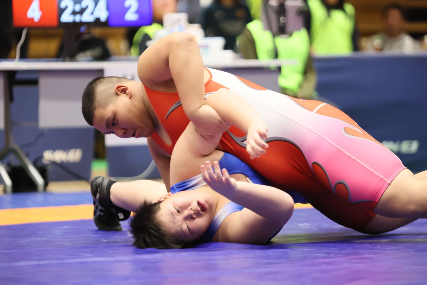 長谷川蓮(青=三重・四日市ジュニア)○[VSU、2:29=9-0]●小泉真琴(千葉・柏クラブ)