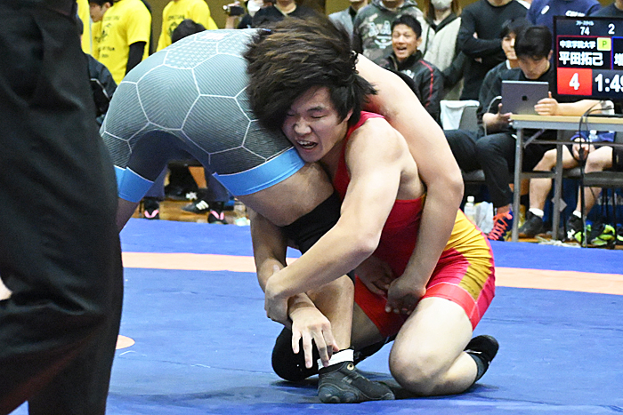 平田拓己(赤=中京学院大)○[7-5]●増野総一郎(日本文理大)