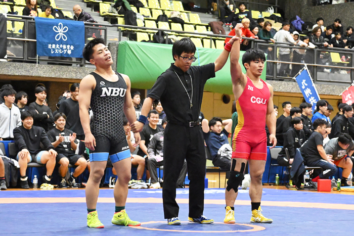 長峯颯(青=日本文理大)○[4-2]●笹俣結睦(中京学院大)