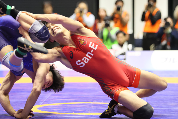 2025年天皇杯全日本選手権第2日は12月19日、東京・駒沢体育館で非オリンピック階級・男女3階級が行われ、男子フリースタイル61kg級は6月の全日本選抜選手権決勝と同じ顔合わせへ。前回と同じく長谷川敏裕(三恵海運)が向田旭登(専大)を撃破し、2021年57kg級以来の日本一に輝いた。