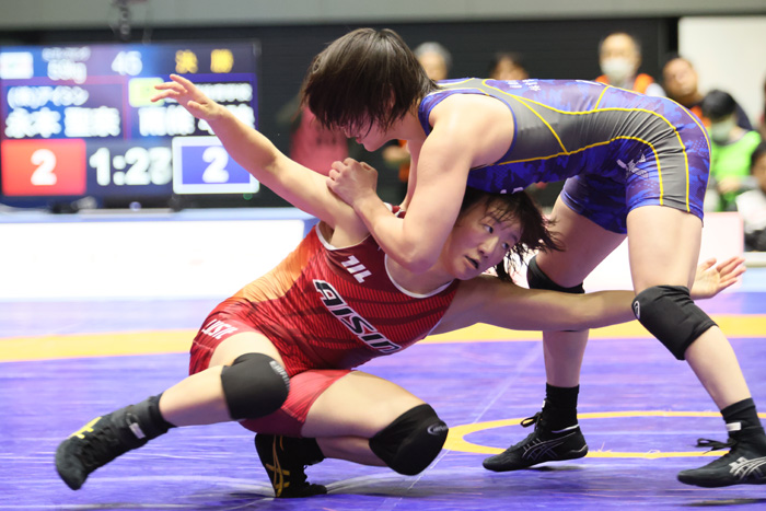 女子59kg級は昨年と今年の全日本選抜選手権2位の永本聖奈(アイシン)が初優勝を飾った。出産を経て全日本選手権の舞台に復帰した2021年東京オリンピック62kg級優勝の恒村友香子(サントリー)は、2試合目の3回戦でインターハイ62kg級優勝の野口紗英(北海道・帯広北高)に敗れ、敗者復活戦に回れなかった。