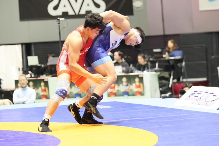長谷川敏裕(赤=三恵海運)○[VSU、4:51=14-4]●向田旭登(専大)