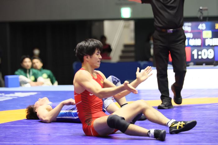 ■70kg級・成國大志(筒井メディカルグループ=52年ぶりに両スタイル優勝の快挙)「(優勝を決めた直後、大の字になって雄叫びをあげたことについて)解放されたわけじゃないけど、注目していただいているので負けられない気持ちはあった。もちろんフリースタイルだけではなく、グレコローマンも1~2回戦で負ける可能性も十分にあった。それを乗り越えての両スタイル制覇なので、本当にうれしい。