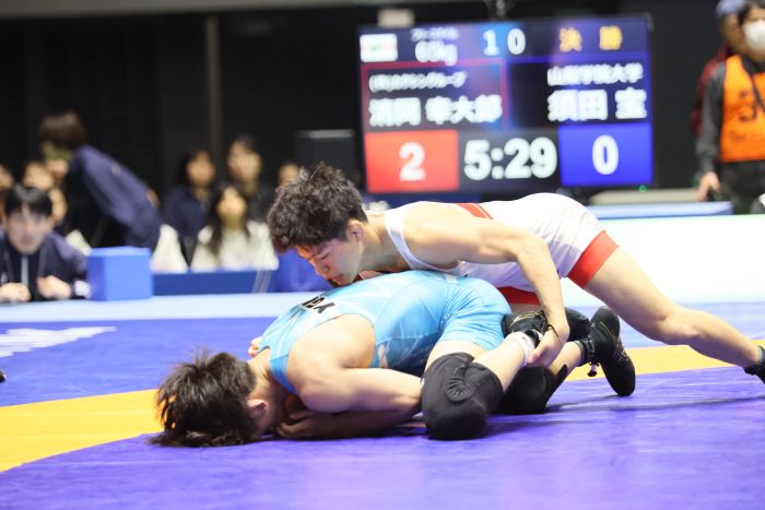 ■61kg級・長谷川敏裕(三恵海運=決勝で学生王者の向田旭登に逆転勝ちし、4年ぶりに日本一)「優勝できてうれしい。(決勝の第1ピリオド、一時は0-4とリードされたが)特に焦ることもなく、次のピリオドで取り返せばいいと考えていました。(逆転の要因となったアンクルホールドについて)4~5回転したんじゃないですかね。でも、その前に相手はけがをしていたと思う。その前に入ったローシングルがきれいに決まったので、それで膝をけがしてしまったのかもしれない。