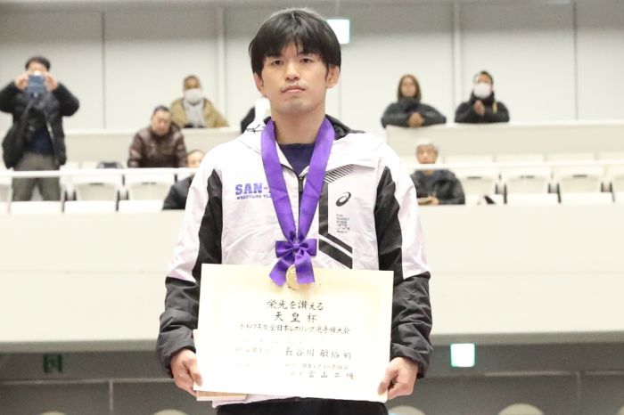 優勝=長谷川敏裕(三恵海運)、2位=向田旭登(専大)