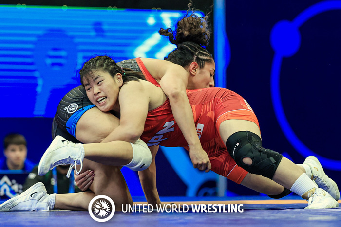 ▲23世界選手権(10月)で闘う吉武。優勝はならなかったが、シニア世界選手権でのリベンジを目指す=UWWサイトより