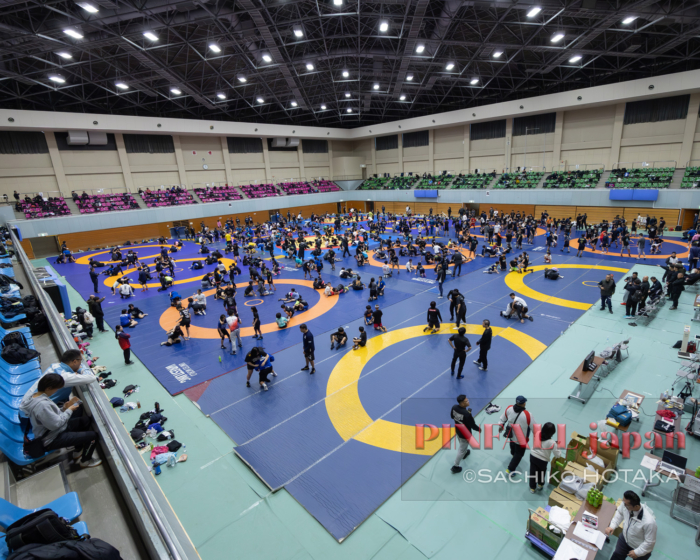 ジュニア選手競技力向上対策の一環として、毎年の年末に全国各地で行われている2025年NTS強化研修会、およびU15・17・20JOCジュニアオリンピック代表選考会の関東ブロック開催が12月25日から山梨県甲府市の小瀬スポーツ公園体育館メインアリーナで行われ、12面マットに600人を超える選手が集まった。