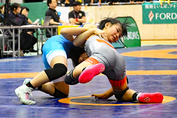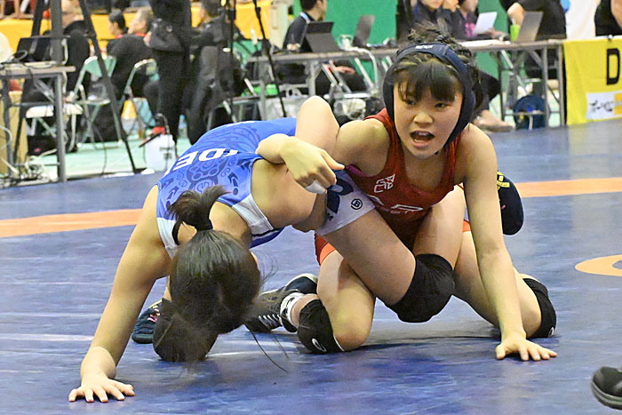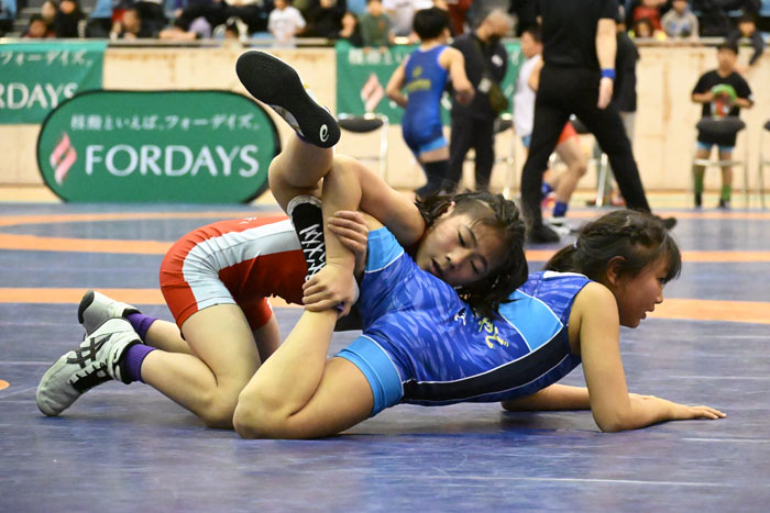 ▲女子4年36kg級優勝・佐藤朱莉(赤=市川コシティ)