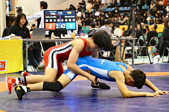 ▲6年42kg決・志田大輝(赤=羽島市連盟)