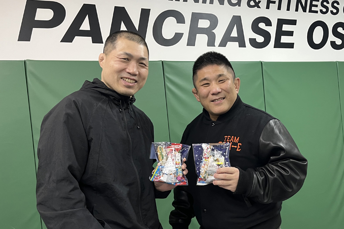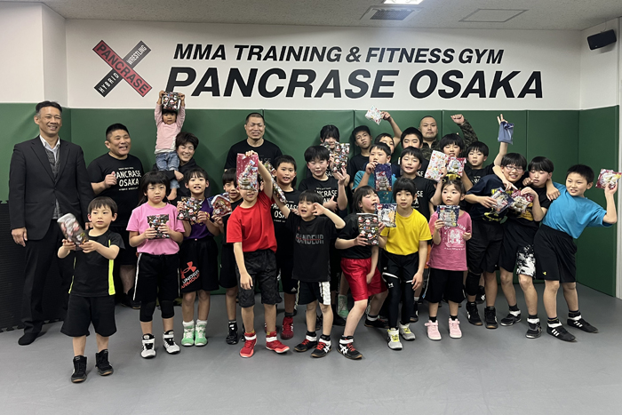 パンクラス大阪のコーチを務める川村嘉裕(同志社大レスリング部OB)が企画しました。寝屋川青少年の創始者である佐藤秀雄よりキッズの指導を学んだ川村は、「お菓子がかかると、平時以上に集中して相手を崩しタックルする」と目を細めています。この楽しい取り組みが日本中に広がればと、記事にしていただくようお願いしました。