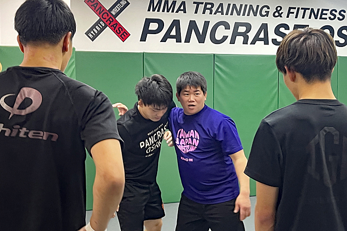 パンクラス大阪は、今年4月から現役MMA選手でもある八木匠(近大OB=元西日本学連委員長)が指導を託されます。八木とともに山梨学院大学時代に全日本学生選手権・全日本大学グレコローマン選手権優勝、さらに世界ジュニア選手権代表経験のある梶雅晴が成人向けにレスリングを教えており、関西を牽引するトップの学生らが出げいこに来ることもあります。
