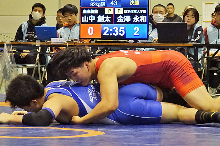 永田裕生(青=東京・自由ヶ丘学園)○[VSU、4:36=10-0]●丸山凉平(東京・文化学園大杉並)