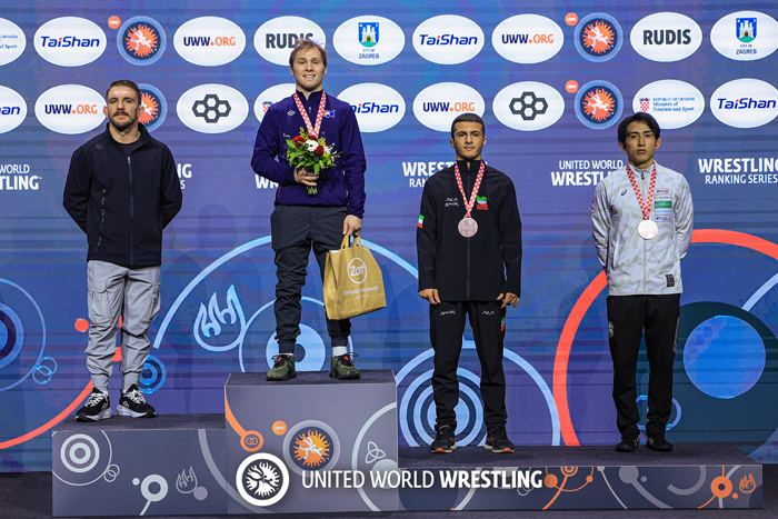 クロアチア・ザグレブで行われた2026年ランキング大会・第1戦「クロアチア・オープン」に参加した男子フリースタイル・チームが2月7日、成田空港着のカタール航空で帰国した。74kg級の青柳善の輔(クリナップ)が銀メダル、57kg級の佐々木風雅(自衛隊)が銅メダルだった。