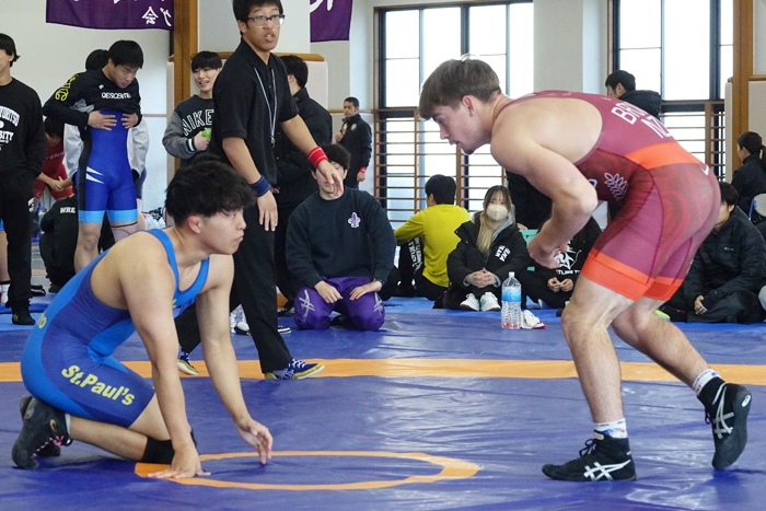 ▲第1試合:FS68kg級 Kaige Brown(赤=豪州)○[11-3]●小林楓駕(立大)