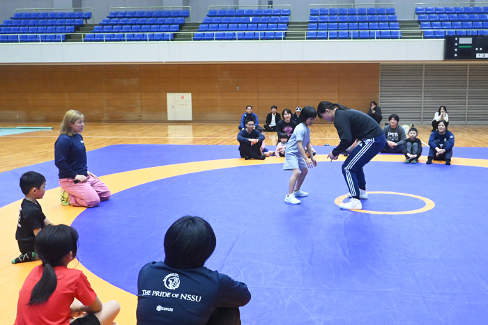 福井県のレスリングの振興を目指して開催した女子トップ選手の合宿(2月26日~3月2日、敦賀市)。中日には地元のキッズ選手と、これからレスリングに取り組んでほしい子ども達が体験参加した練習会が行われた。