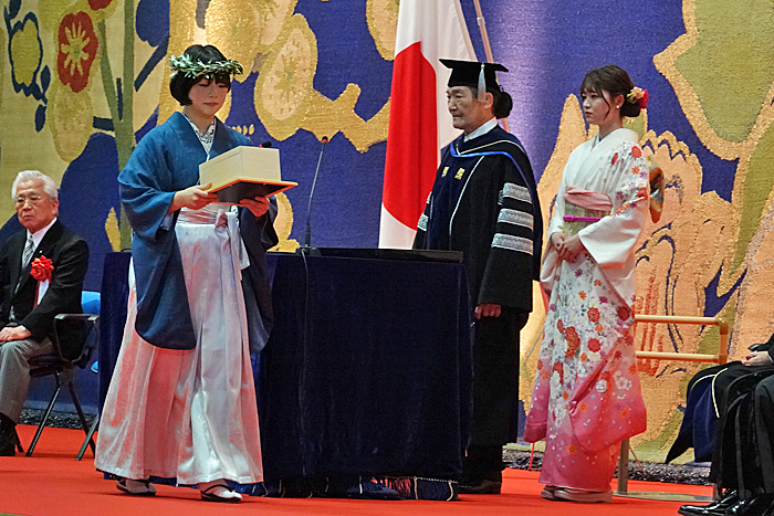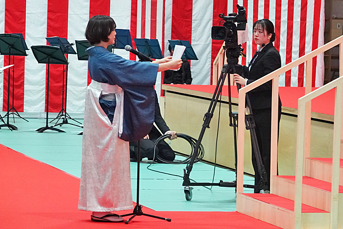 藤波は1,753人の卒業生を代表してあいさつ。公式戦150連勝中という紹介に保護者を含めた会場からどよめきが起こる中、「オリンピックで優勝したときに感じたことは、結果より過程が何よりも尊いということでした。自信とは才能から生まれるものではなく、積み重ねた日々の準備から生まれることを知りました」と、4年間で得た収穫を披露。