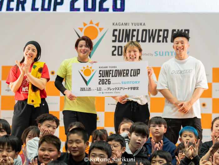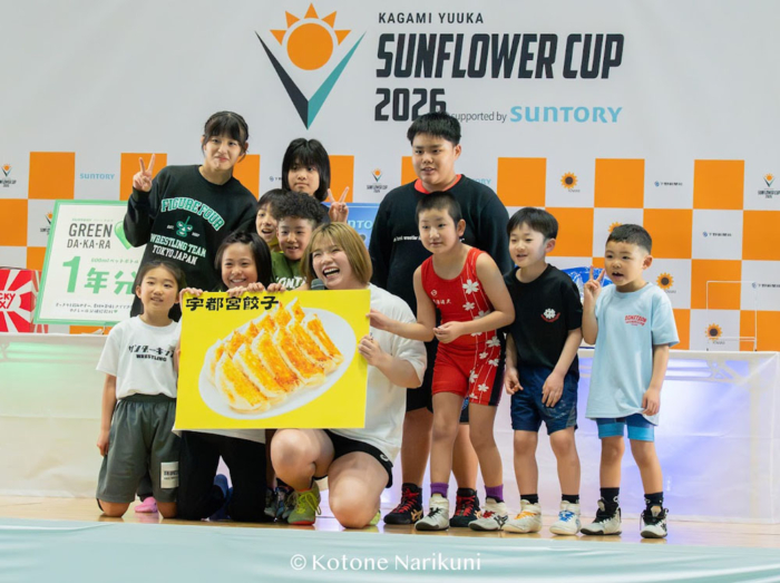 2024年パリ・オリンピック女子76kg級金メダリストの鏡優翔選手(サントリー)が代表を務める株式会社「KAWAII」が、3月21~22日、鏡選手の地元である栃木・宇都宮市でキッズレスリング大会「鏡優翔 SUNFLOWER CUP 2026 supported by SUNTORY」を開催。ブレックスアリーナ宇都宮に49チーム297人のキッズ選手が集まり、“未来の鏡優翔”を目指した。