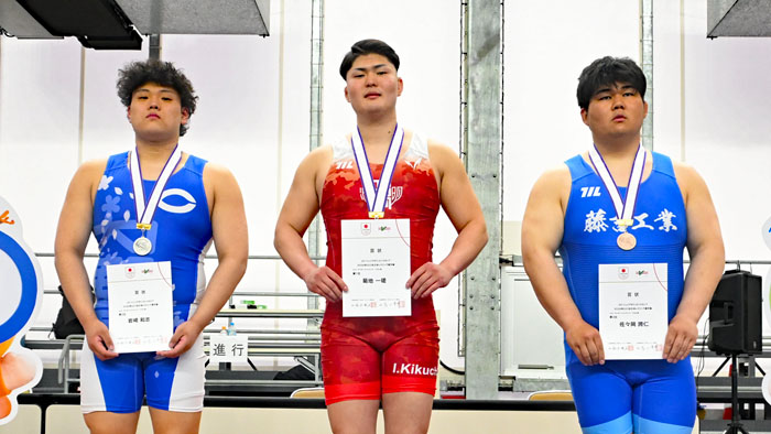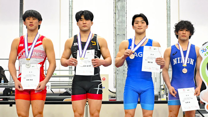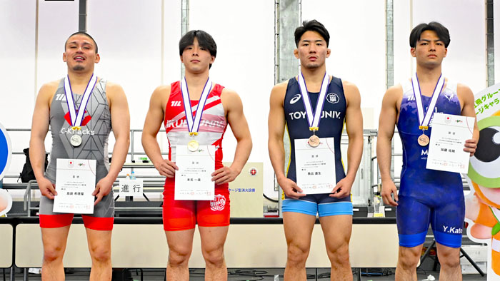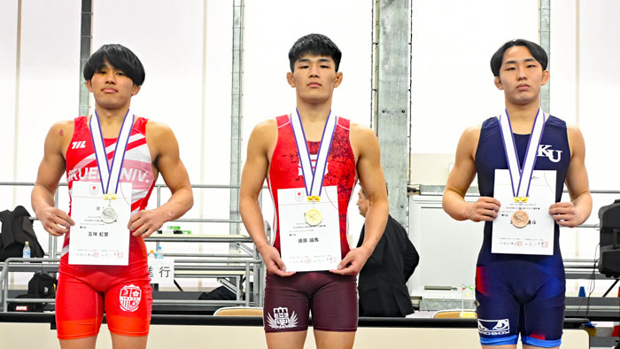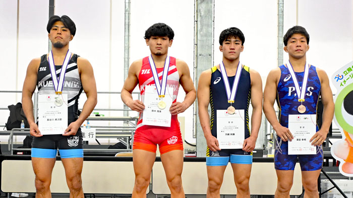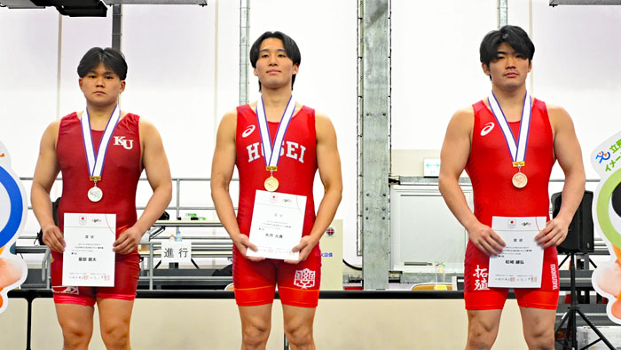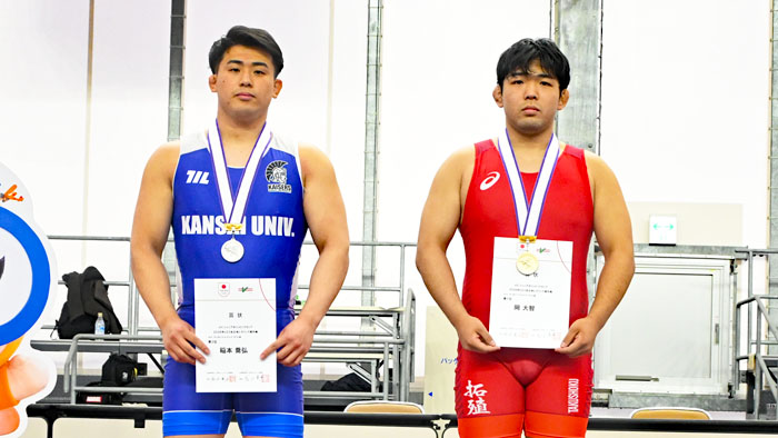 優勝=岡大智(拓大)、2位=稲本喬弘(関大)