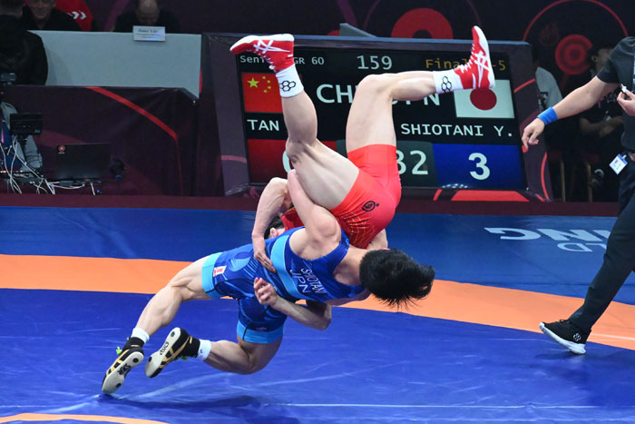 塩谷はタン・ハオドン(中国)と対戦し、4点となるリフト技を爆発させるなどして5-1のスコアで勝利。55kg級で2度優勝している大会で、60kg級での優勝はならなかったが、銅メダルを確保した。