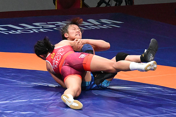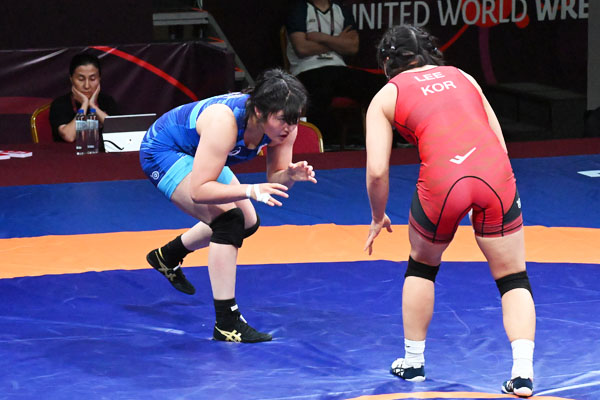 ■62kg級・尾﨑野乃香(慶大OG=2試合に勝ち、2023年アジア大会で負けた北朝鮮選手へのリベンジに挑む)「肩の力を抜いて、力まないようにやろうと思っていて、初戦も今の試合(準決勝)もそれができた。いい調子と思います。(直前に闘った日本の2選手がフォールで連敗し)悲しかったですけど、(自分の)ムードとは関係なかったです。