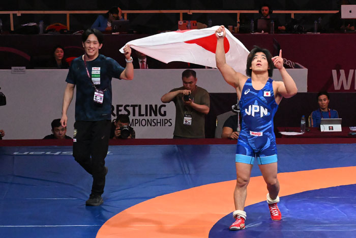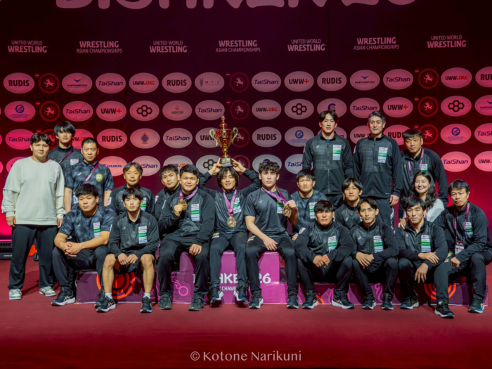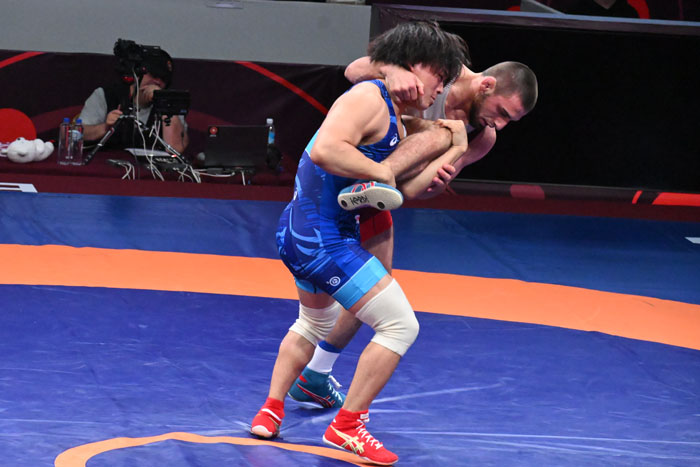【ビシュケク(キルギス)】2026年アジア選手権最終日は4月12日、キルギス・ビシュケクで前日開始の男子フリースタイル5階級の敗者復活戦とファイナルが行われ、決勝に進んだ74kg級の青柳善の輔(クリナップ)が優勝。3位決定戦に回った86kg級の髙橋夢大(三恵海運)と92kg級の石黒峻士(MTX GOLDLIDS)は、ともに敗れて5位に終わった。
