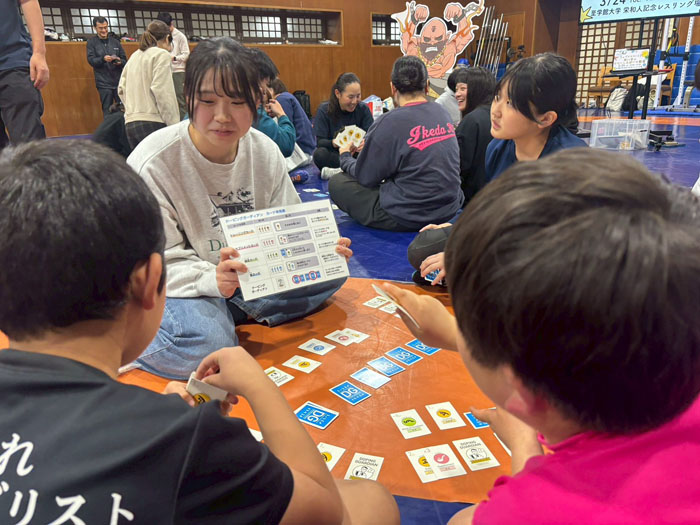 続いて行われた体験セッションでは、アンチドーピング教材として活用されている体験型カードゲーム「ドーピングガーディアン」(下記参照)を用い、体に取り入れるものへの意識の重要性を体験的に学んだ。