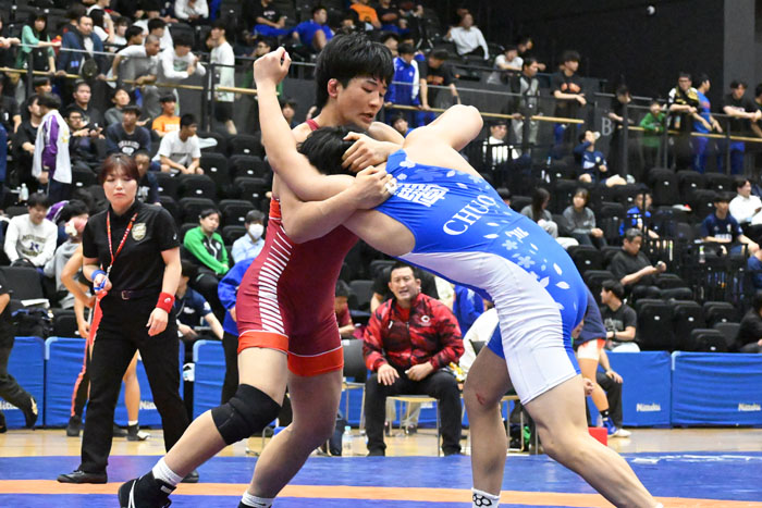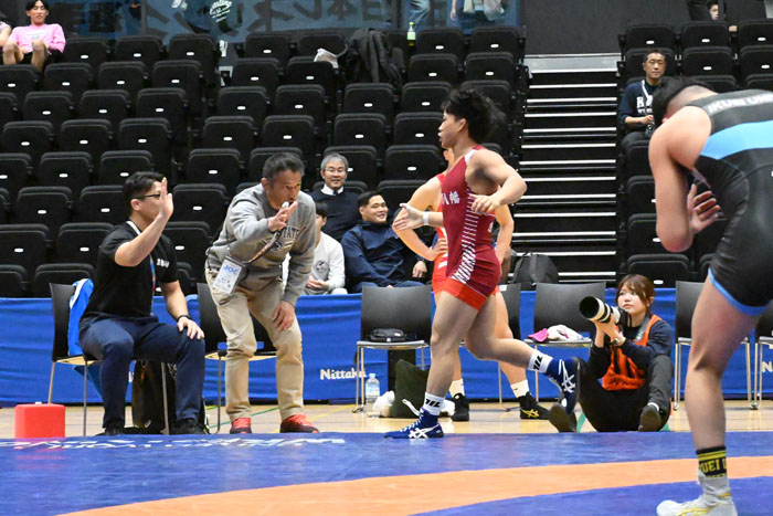 昨年の全日本選手権には出場していないので、大学選手と闘うのは初めてのこと。だが、「同じ63kg級で計量する。同じ体重で、年齢もさほど変わらない。挑戦者という気持ちで闘いました」とのことで、年上選手への気後れはない。もっとも、昨年は2年生にしてインターハイや全国高校生グレコローマン選手権を制しているのだから、年上選手との試合は、どうということはないのかもしれない。